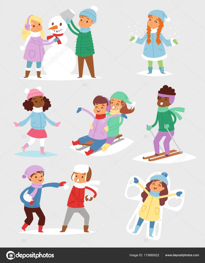 Kids Winter Activities Cartoon Illustrations Set Stock Vector Illustration Of Friend Activity 167025165